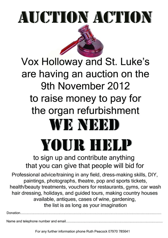 St Luke’s and Vox Holloway Fundraising Auction, Friday 9th November 7pm