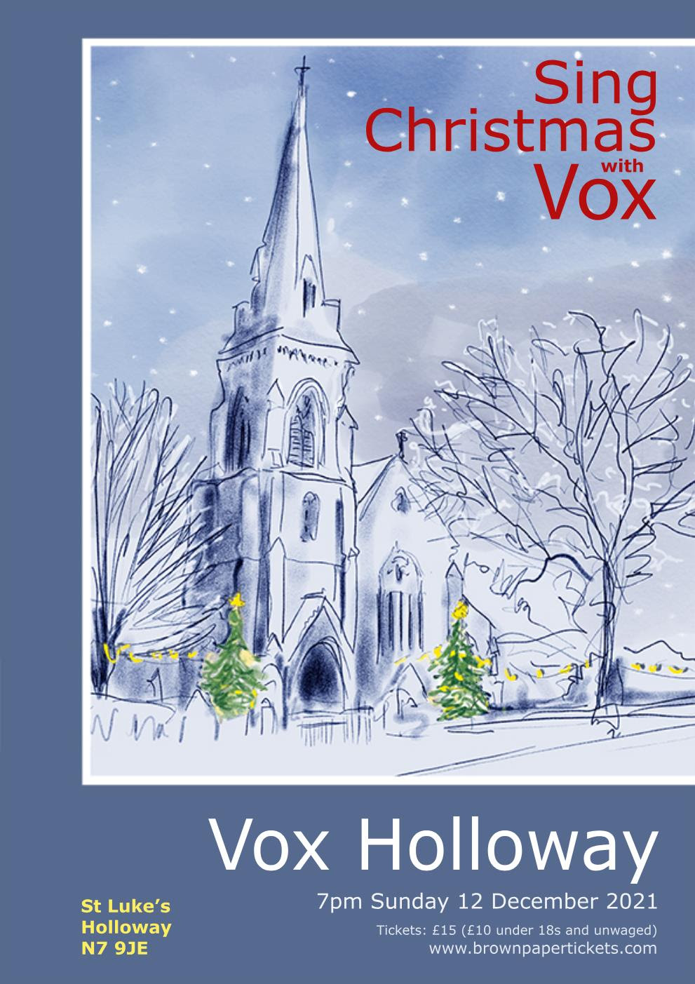 Join Vox Holloway, our star soloists, amazing band and children’s choir to sing Christmas in. An opportunity not to be missed after the cancellation of mass festivities last year.
